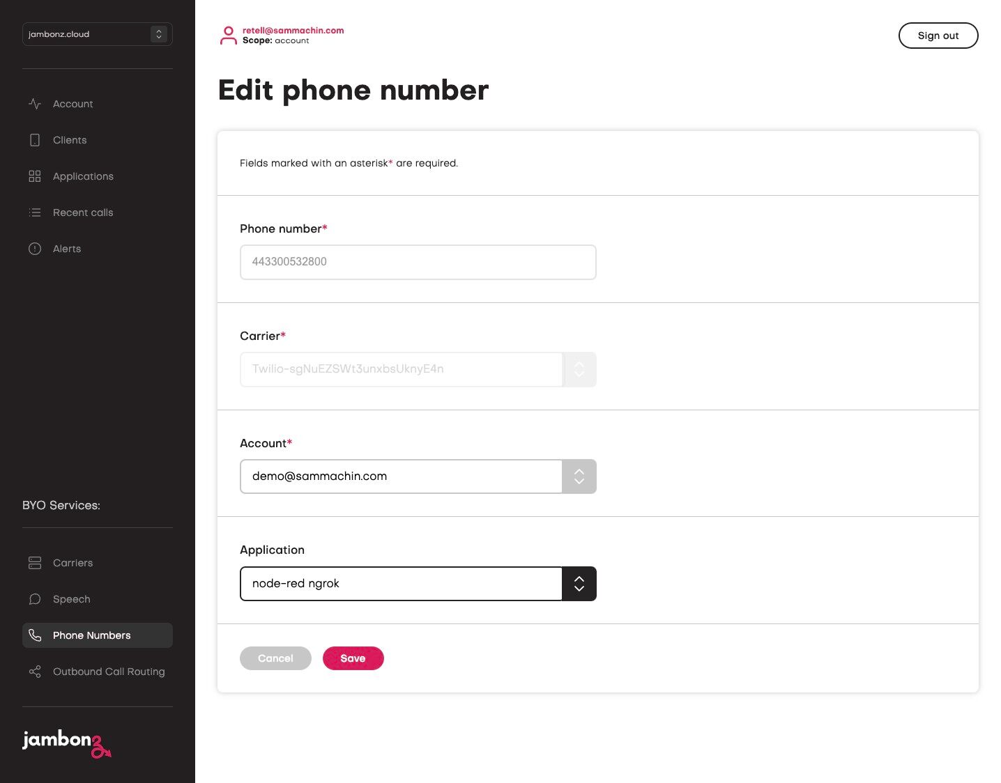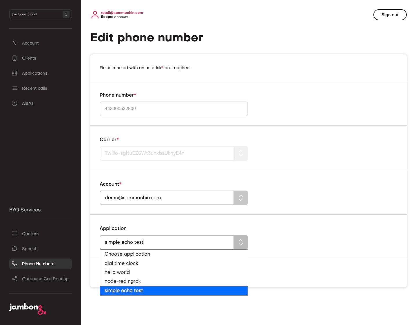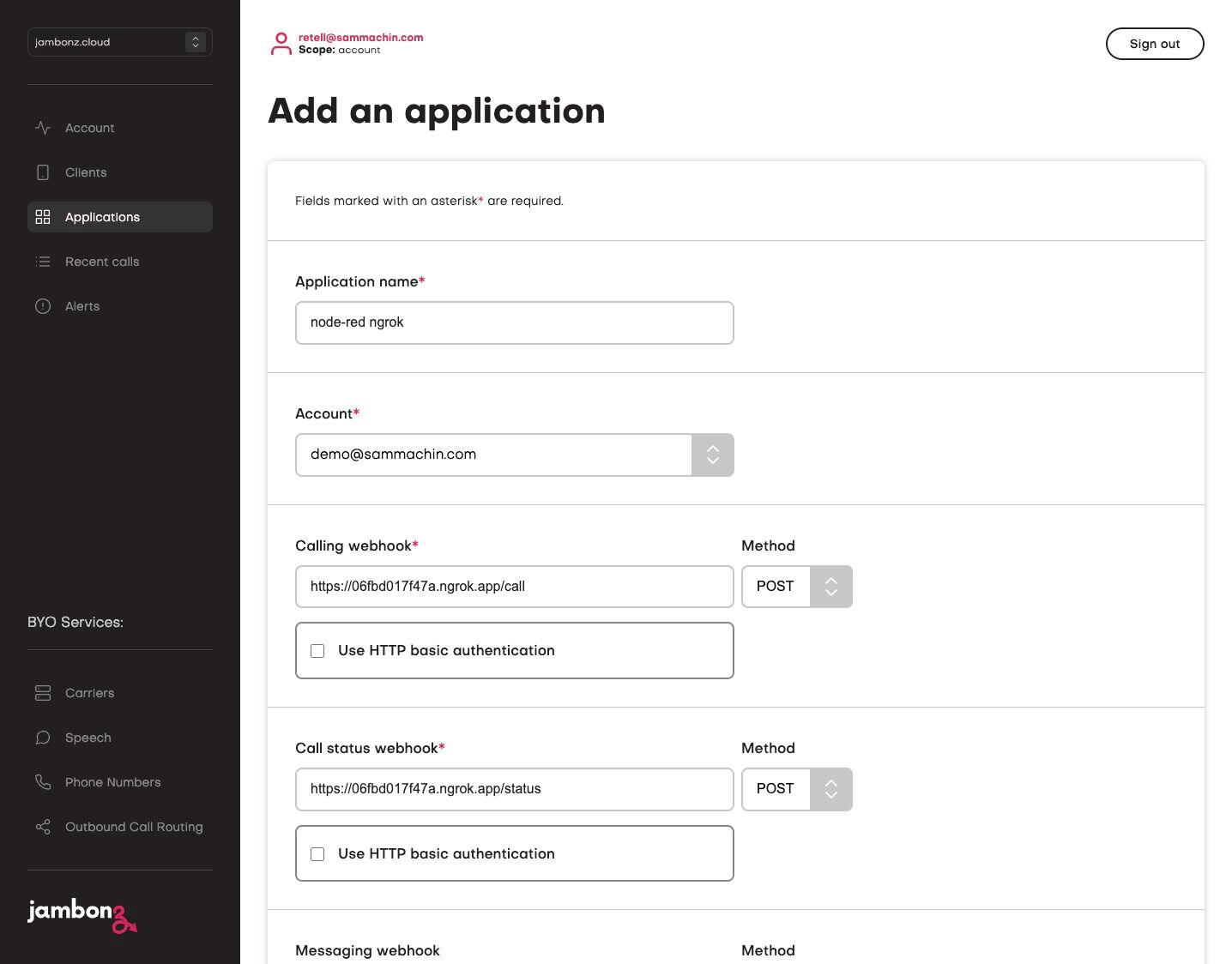 28. In a new tab, navigate to https://jambonz.cloud/
