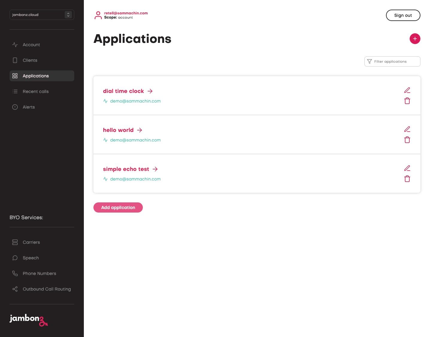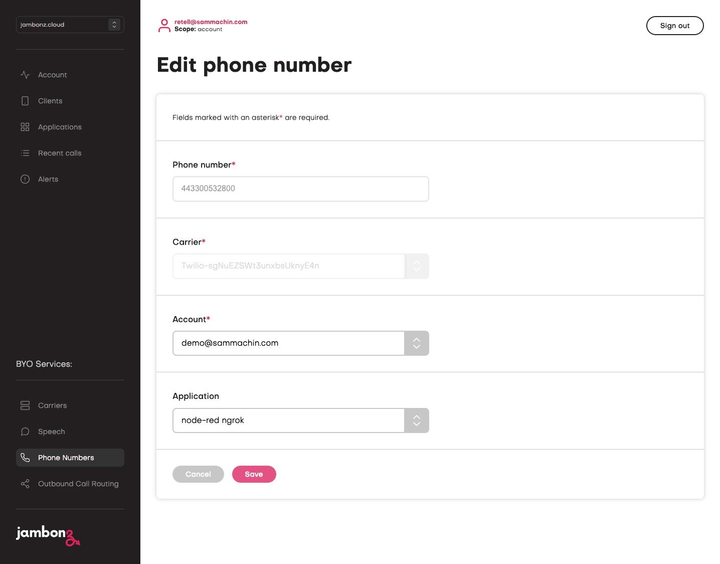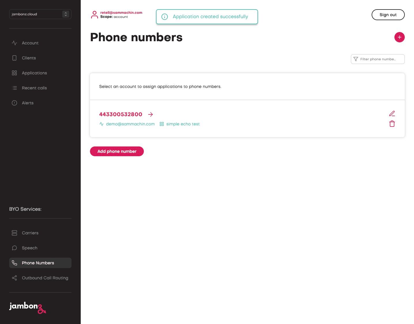 28. In a new tab, navigate to https://jambonz.cloud/