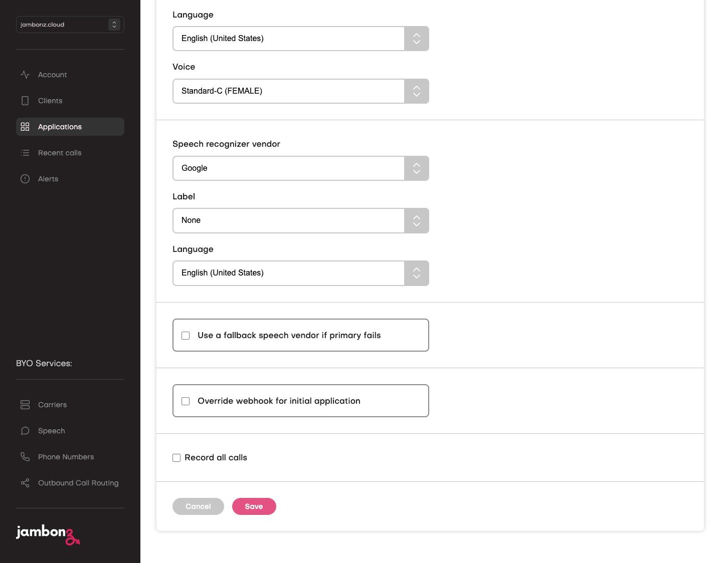 - If desired, select fallback speech vendors in case the primary vendors fail.