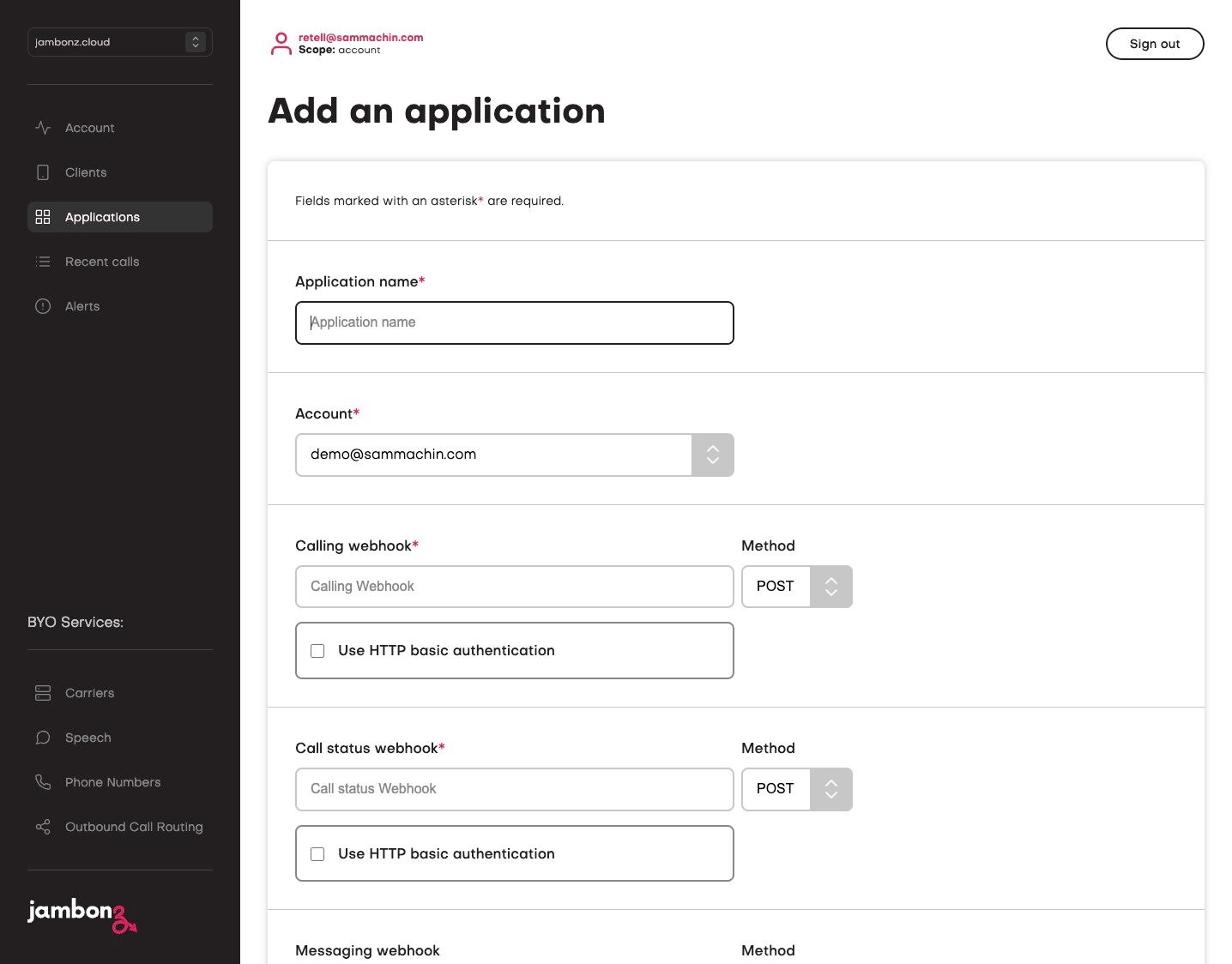 Provisioning the application in jambonz is also similar.